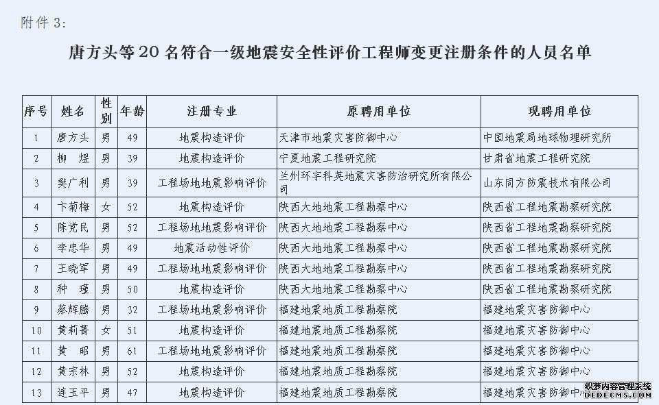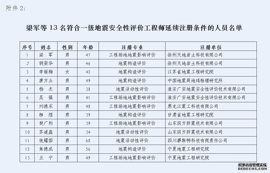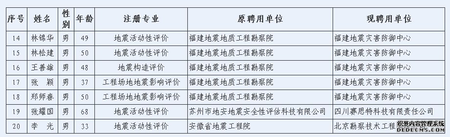 关于2014年第二批符合一级地震安全性评价工程师注册条件人员名单的公示