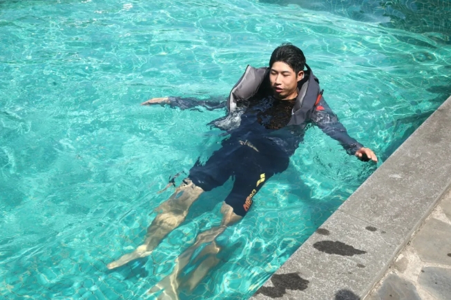 会议现场,工作人员进行了防溺水冲锋衣的落水演示,直观地展现了该产品的性能。防溺水冲锋衣在落水后的3秒内能够迅速膨胀,将穿着者的上半身快速托起至水面以上,从而有效地保障使用者的安全。