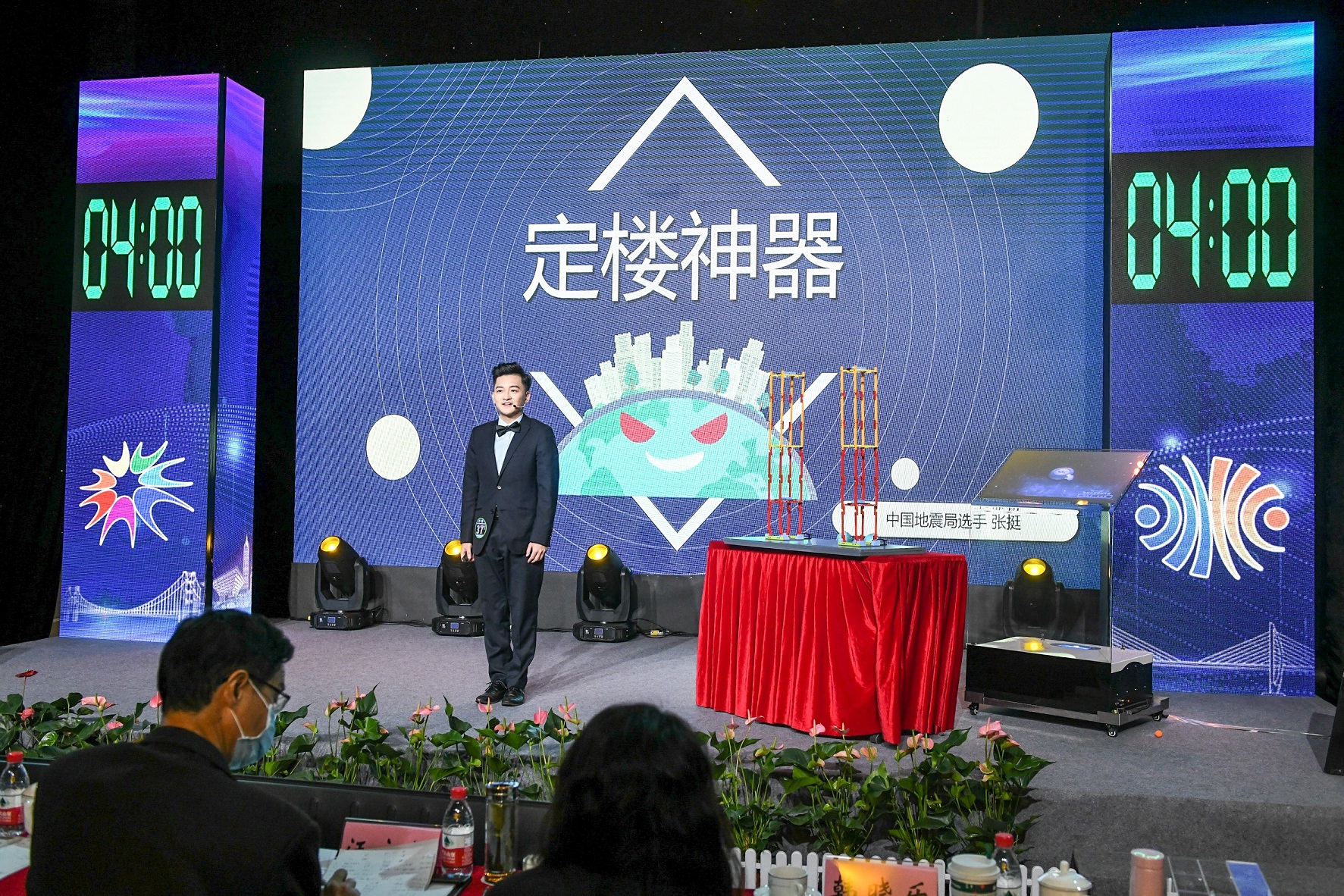 决赛分为自主命题讲解、随机命题讲解、《中国公民科学素质基准》科技常识测试和评委问答4个环节,不仅比拼选手擅长的科学内容,还考察其临场应变能力。张挺的讲解题目是《定楼神器---阻尼器》,他以科学严谨、生动有趣的语言讲解了阻尼器的工作原理和防震减灾的作用,以及在现代建筑中的应用。 ![]()