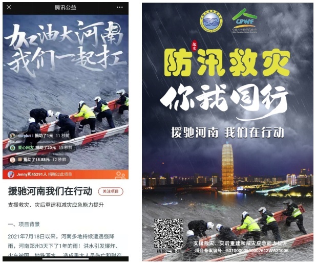 针对 7月17日以来河南连降暴雨引发的险情,中国灾害防御协会迅速启动应急预案,开展有关抗洪抢险方面工作。根据气象部门预报,未来两天,河南中部仍将有强降雨,为进一步弘扬中华民族“一方有难、八方支援”的传统美德,支持河南抗洪救灾,帮助受灾群众度过难关,全力保障受灾地区做好灾后重建和后续防灾减灾工作,中国灾害防御协会与中国人口福利基金会共同发起“援驰河南我们在行动”公益基金项目,并于昨天晚上在腾讯公益平台紧急上线。