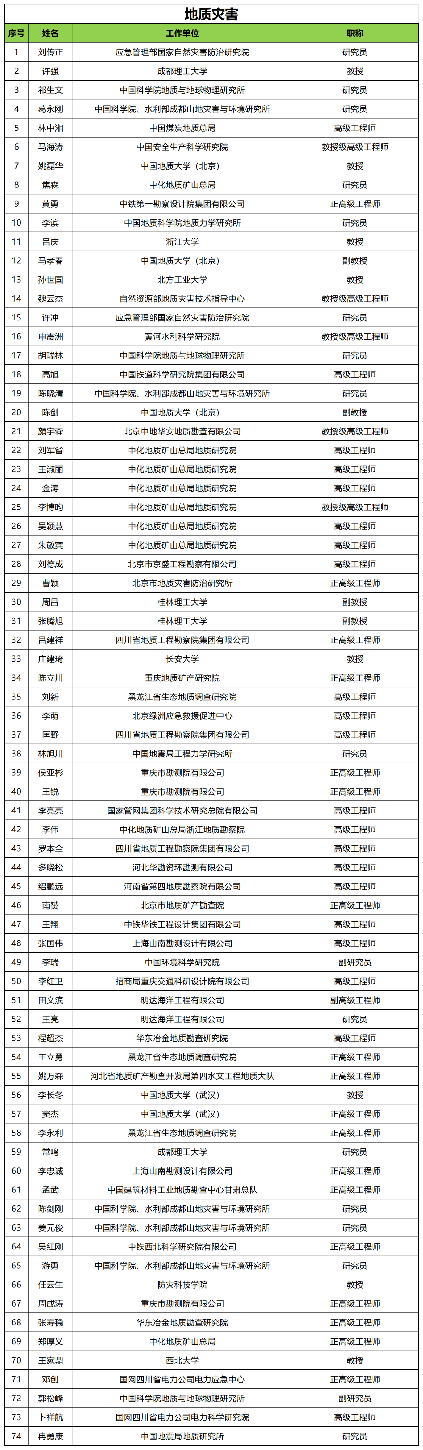 陈晓非 殷跃平 高孟潭 刘传正 李山有 许强 张玉芳