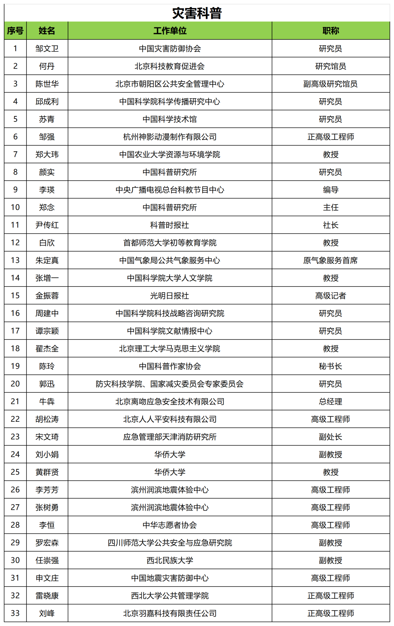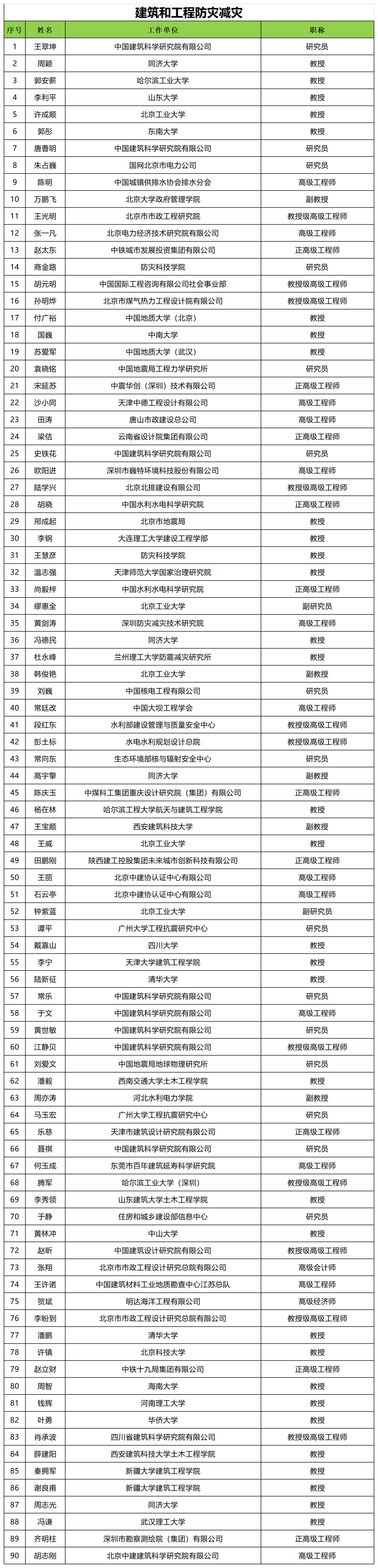一、专家委员会:成员89人,分设综合组、水旱与森林草原火灾组、气象与海洋灾害组、地震与地质灾害组、事故灾难组、应急救援组、建筑与基础设施组、生态环境与农业组、安全应急产业组、社会力量与灾害保险组 10 个专项组别。