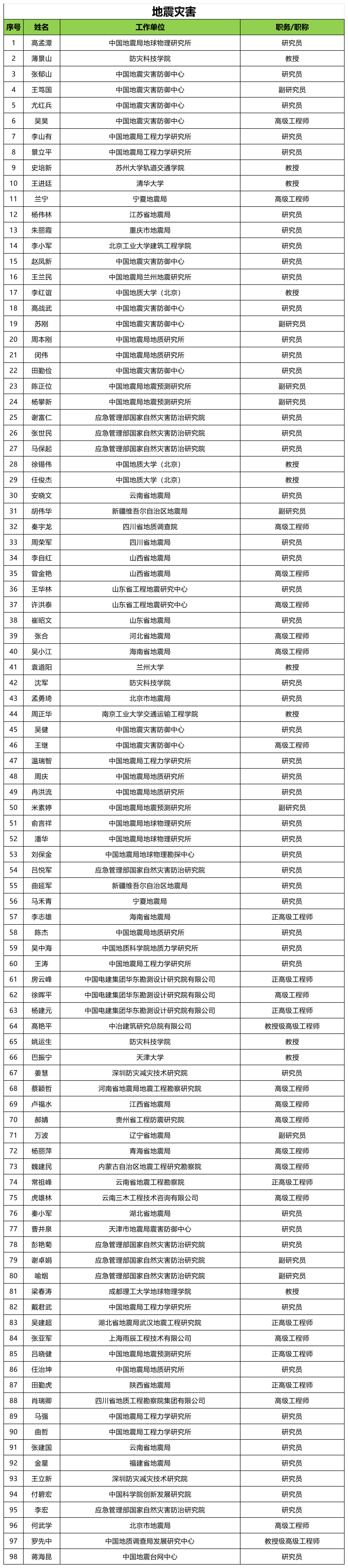地震与地质灾害组(9人):