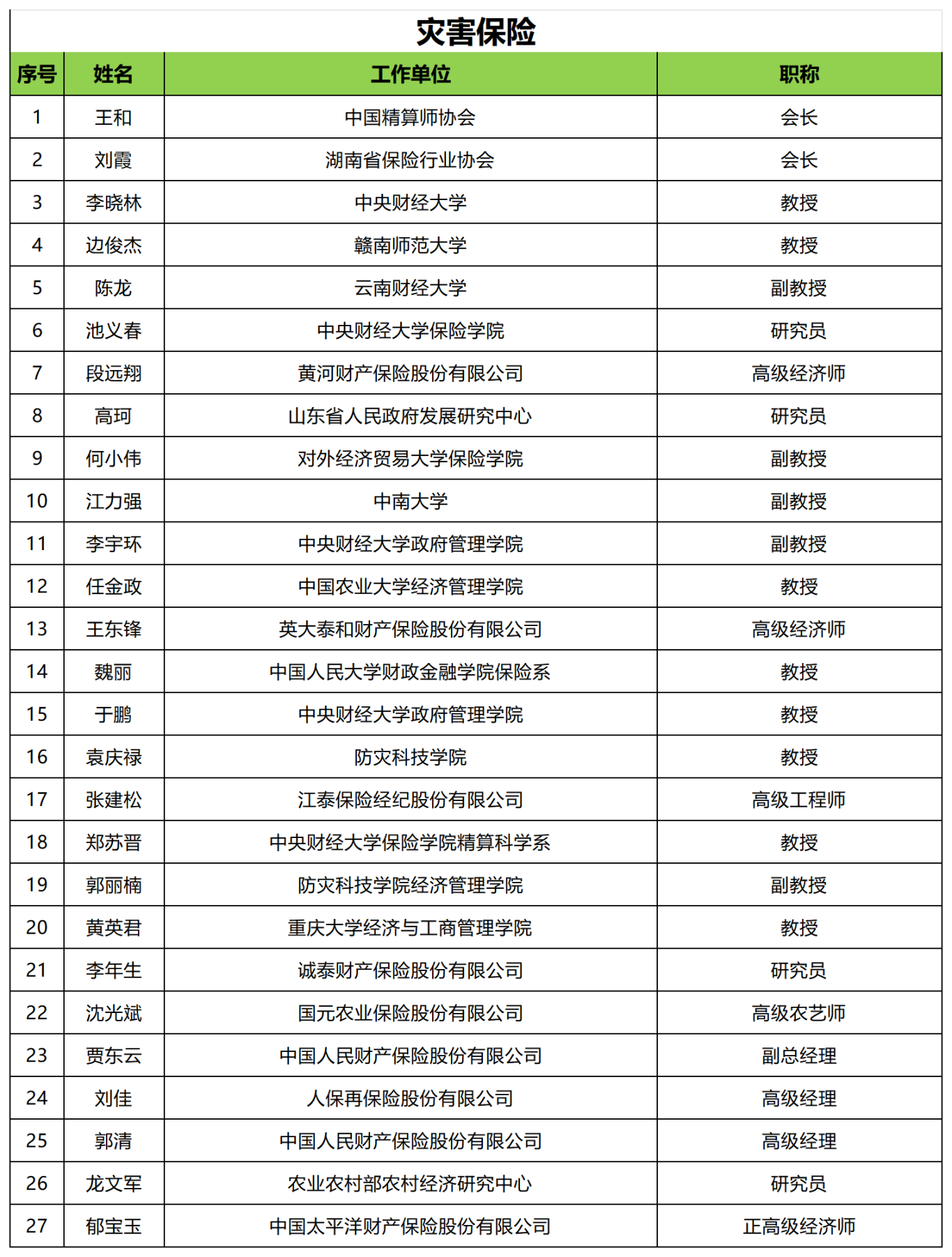 社会力量与灾害保险组(6人):