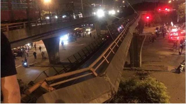 今日晚六时许,江苏无锡市北环路附近一高架桥发生倒塌。